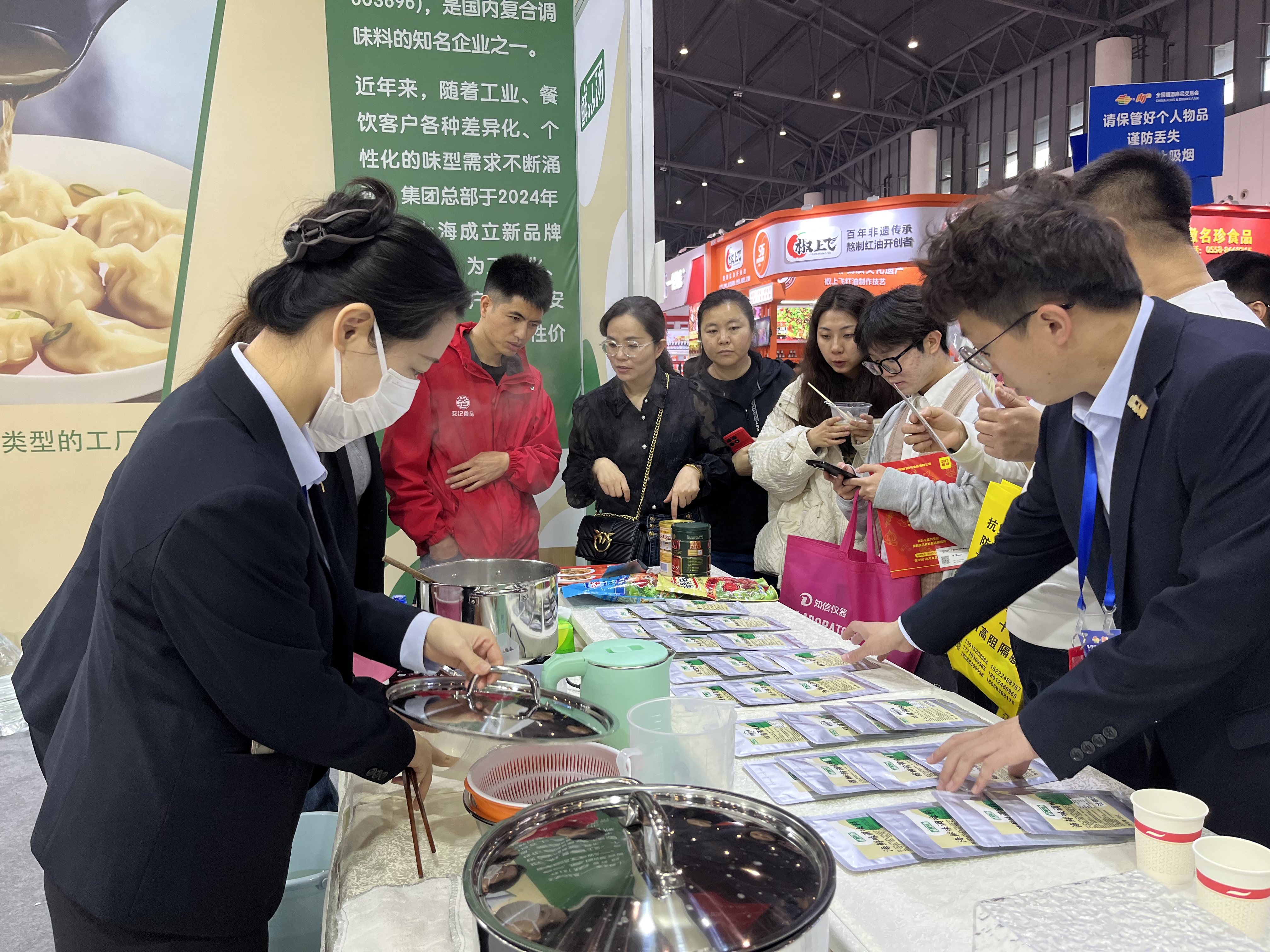 展會開始,安記生物團隊成員以最佳的精神風(fēng)貌迎接觀展客戶。試吃組井然有序地派發(fā)試吃品螺螄粉,讓觀展商以最直接的形式了解我們的產(chǎn)品、風(fēng)味;客戶招待組則負責(zé)介紹產(chǎn)品,溝通客戶需求,讓更多伙伴了解“鮮以湯“品牌,與意向客戶建立友好關(guān)系。